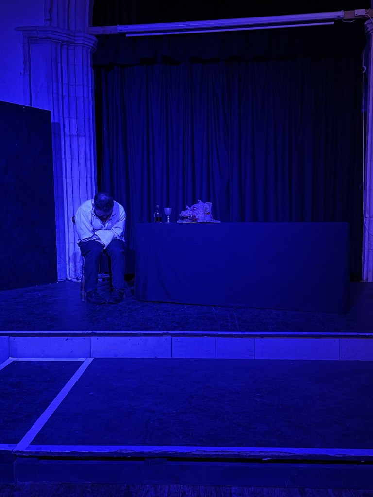 As I said on their page, it was pure gothic spectacle – very ‘Webster’. Dark, brooding, ironic, hyperbolic, brilliant! It was unnerving from the moment I stepped in to hear the creepy music box tinkling, and Renfield shivering on stage, looking straitjacketed, beside a rotting pig’s head. I was literally on the edge of my seat – and I do mean literally- leaning forward and intensely fixed on every twitch, snarl and spurt of blood! I managed to escape without a splash even though I was in the front row. I’ll be blogging about it later and many thanks to Suzanne Hawkes at Two Sisters Arts Centre in Felixstowe for the perfect spot to perform this play. Hannibal Lector hasn’t nothing on James Hyland’s psychopathic Dracula and the Jekyll to Hyde transformation of Renfield was so disturbing and animalistic that I forgot to drink my wine!