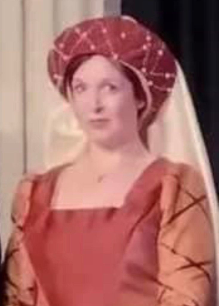 As you know, I played Mary Boleyn and Elizabeth Barton In The Rise and Fall of Thomas Wolsey. Here are a couple more shots from that showing me as Mary Boleyn and a similar painting of her: