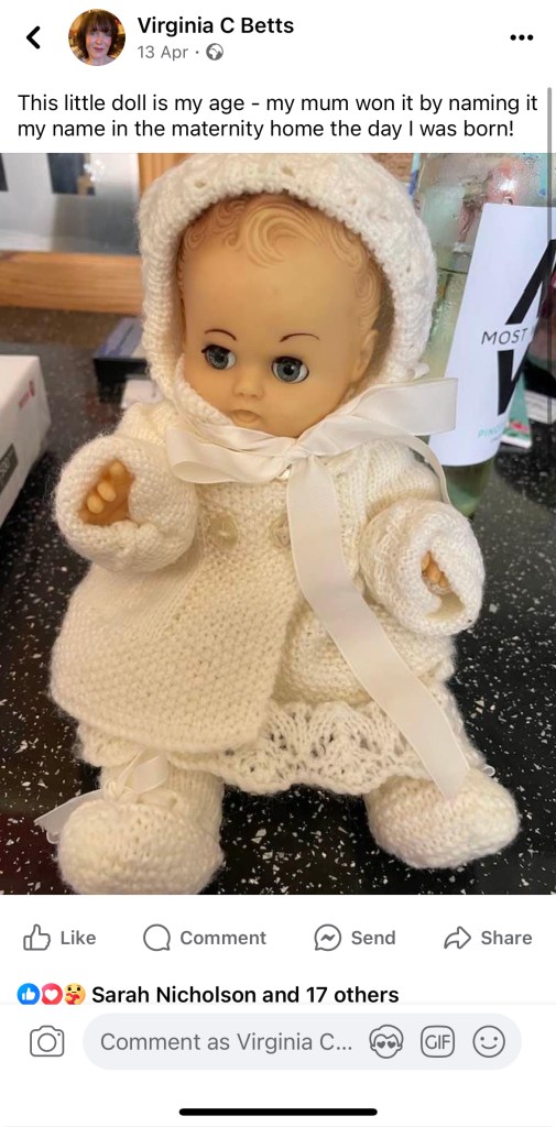 This little doll was won by my mum for naming it Virginia in the maternity home the day after my birth: