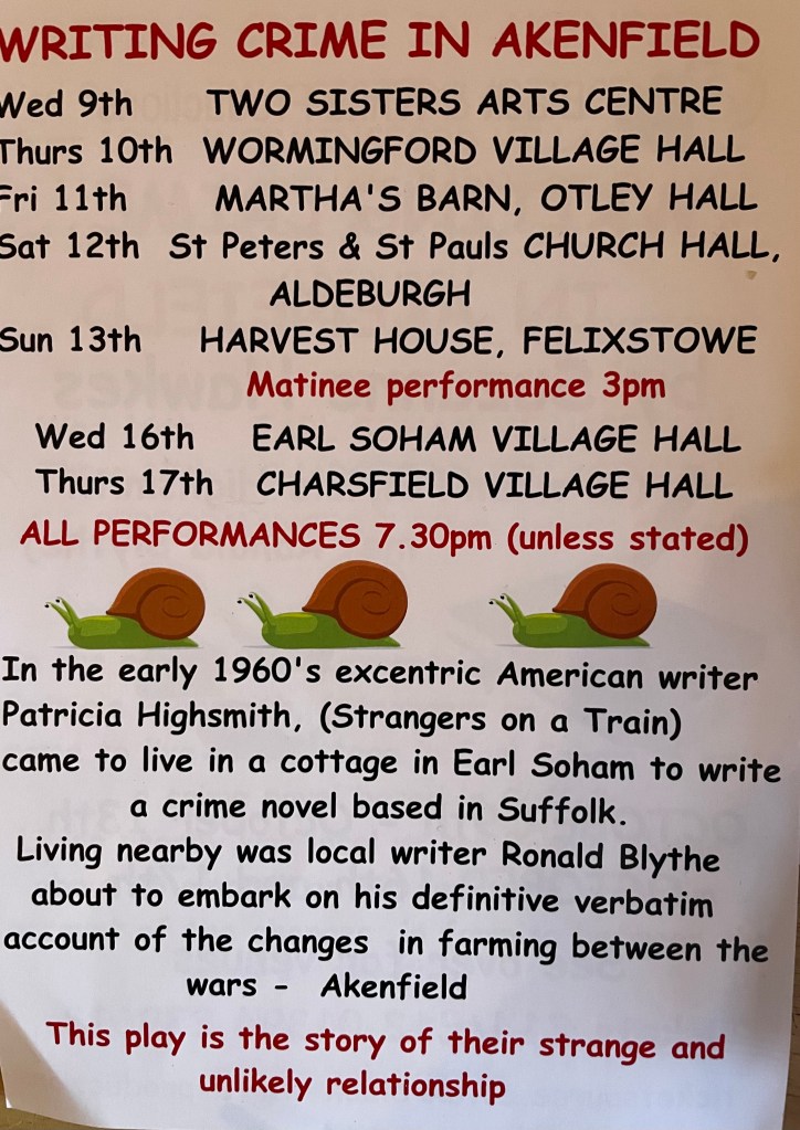 The tour and return of Pat and Ron. I am reposing my role as Patricia Highsmith and touring. Dates below.